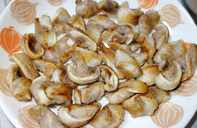 たまに行くフードウェイで気になって買って以来、毎回買ってる豚のど軟骨。(一個一個がデカいので細切れにしてる)