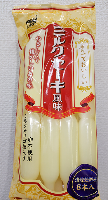 あの凍らして折るチューブ状のやつ(名称諸説あり)、ミルクセーキ味。これ初めて見た! あめえ! うめえ!! 追加で数袋買えたけど、次行ったらもう無くてそれっきり買えず。