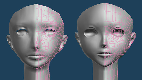 パオうらMMDモデルを9年ぶりにリファインしてみようかなと思って、ずーっと顔のトポロジーを修正してた。